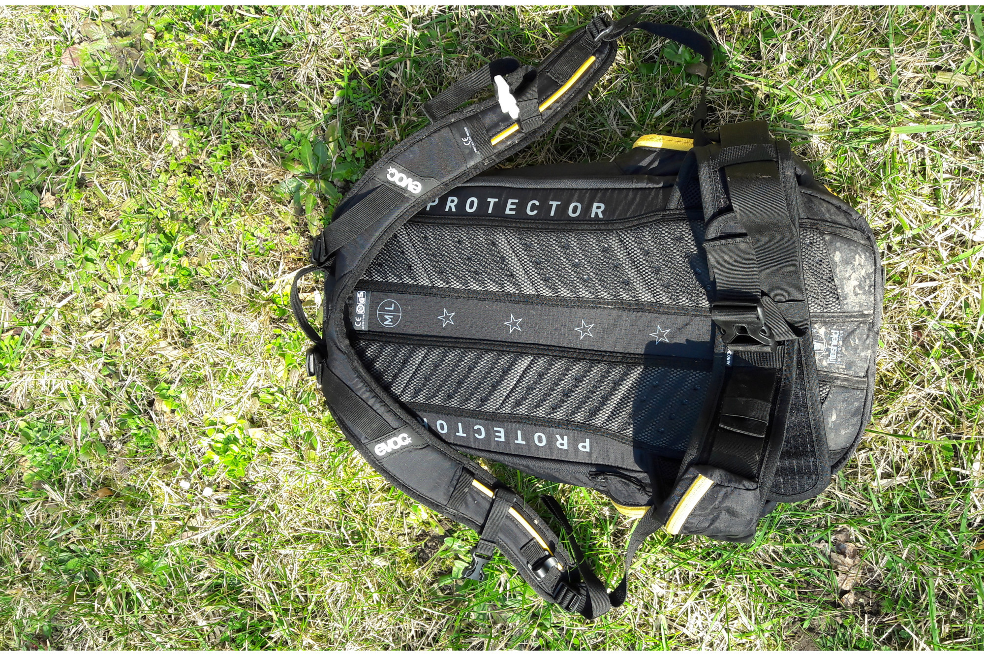 La protection est aussi de la partie, Evoc ayant subtilement intégré une dorsale au sac, et l'équipent du système de ventilation de la marque : Liteshield System Air.