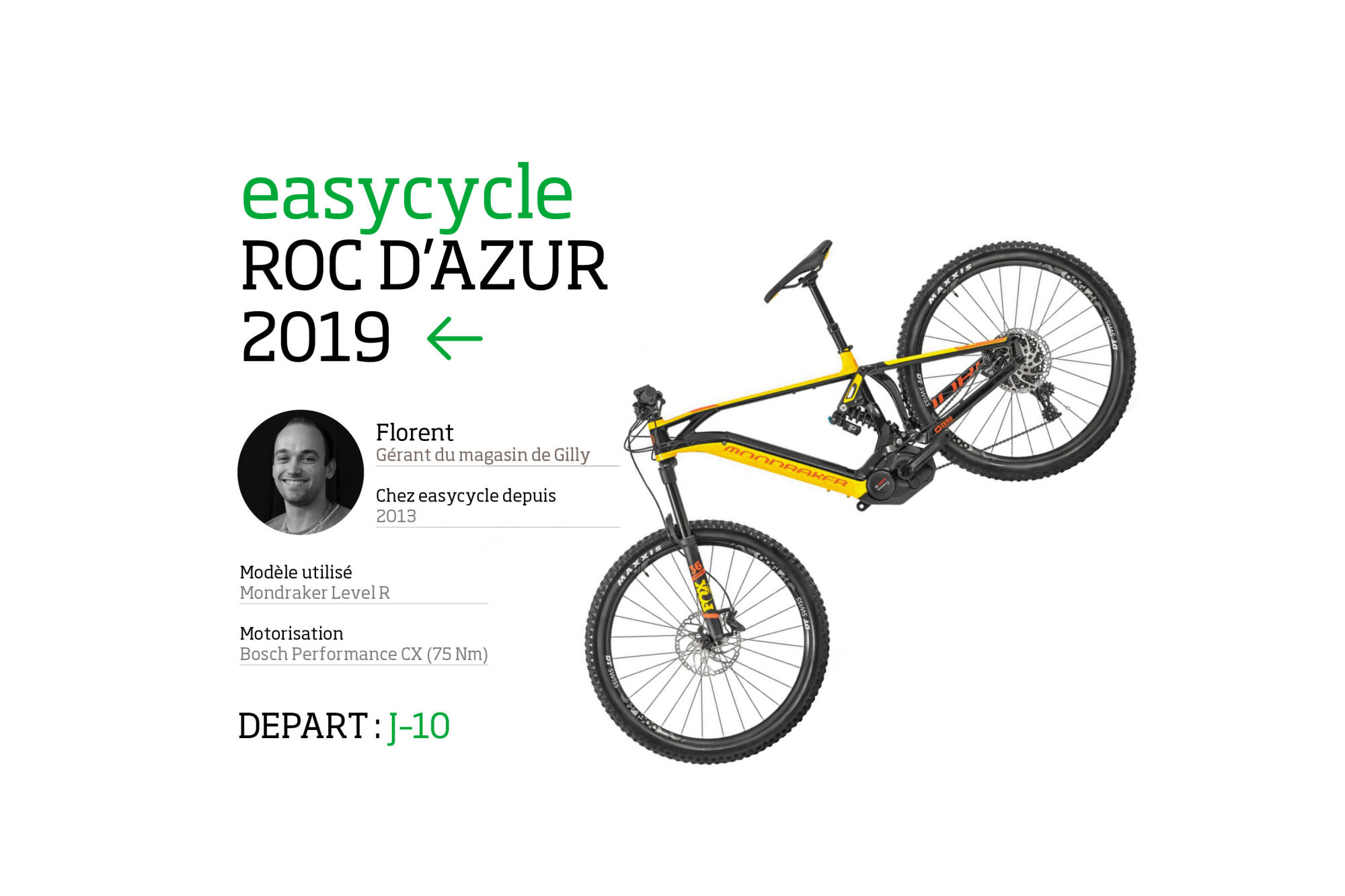 « Un Mondraker Level R, moteur Bosch Performance CX, un 29'' en 170mm devant et 160mm derrière. C'est technique, mais à un moment donné, il faut bien arrêter de rigoler. Avec sa forward geometry, Mondraker propose un empattement plus grand, avec un top tube plus long et une potence plus courte. Ça me permet une position agressive, plus portée vers l'attaque et puis, ainsi, le vélo ne risque pas de cabrer. »