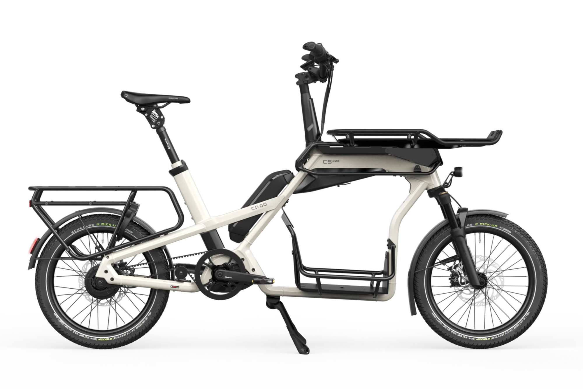 La maniabilité est très agréable même si le CS200 est bien chargé, le moteur Bosch CX cargo très agréable et puissant et ses changements de vitesses Enviolo dans le moyeu vous permet de changer de rapport en roulant ou à l'arrêt !